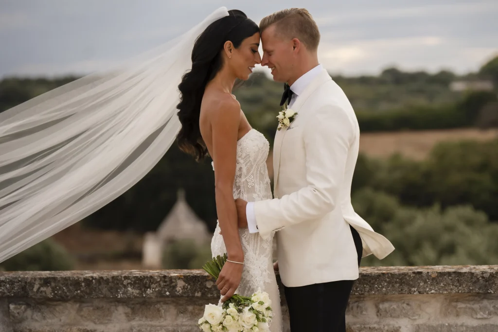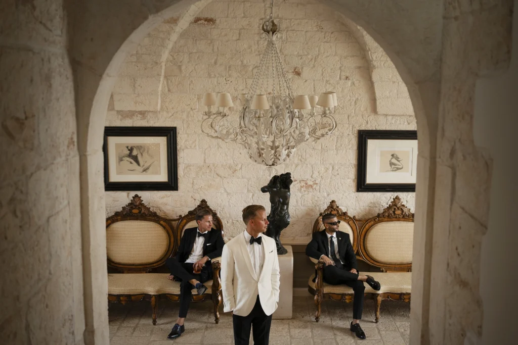 Quando l’eleganza newyorkese incontra il fascino autentico del sud Italia, nasce un matrimonio da sogno. Tom e Kasia sono arrivati da New York per celebrare il loro amore in uno dei luoghi più affascinanti della Puglia: la Masseria Traetta, immersa tra gli ulivi secolari di Ostuni. Con oltre 80 ospiti internazionali al seguito, la loro giornata si è trasformata in un vero evento da copertina. Gli sposi hanno scelto uno stile raffinato ma mai eccessivo: ogni dettaglio – dagli abiti all’allestimento floreale – parlava di gusto, sobrietà e amore per la bellezza. La preparazione si è svolta nelle stanze bianche della masseria, tra risate, attesa e scatti carichi di emozione.